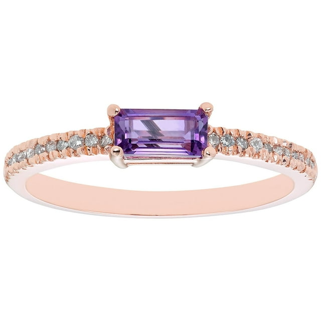 Baguette Cut Gemstone and 0.10 CT. T.W. Diamond Ring in 14K Gold