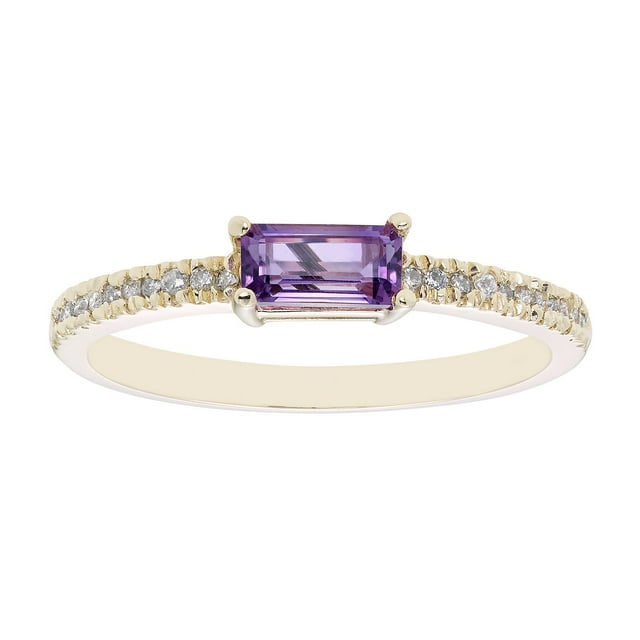 Baguette Cut Gemstone and 0.10 CT. T.W. Diamond Ring in 14K Gold