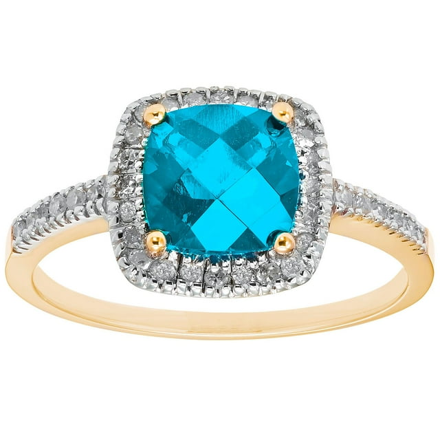 Cushion Cut Gemstone & 0.18 CT.T.W. Halo Diamond Ring in 14K Gold