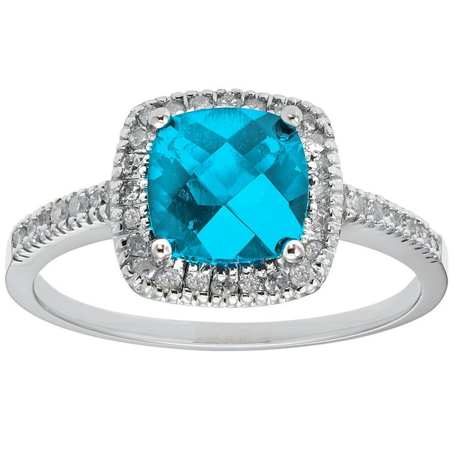 Cushion Cut Gemstone & 0.18 CT.T.W. Halo Diamond Ring in 14K Gold