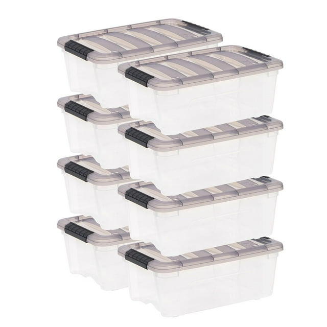 IRIS USA, Stack & Pull 13 Quart Clear Plastic Storage Box, 10.98" W x 16.50" L x 6.53" H, 8 Piece Set