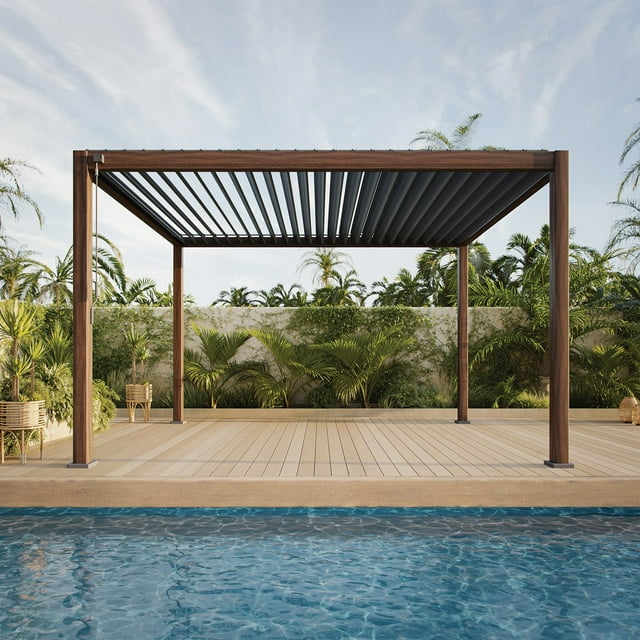 Mirador Takasho Acacia Finish Louvered Pergola, Choose Size