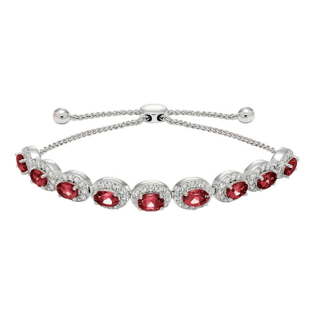 Oval Cut Gemstone Halo Bolo Bracelet in Sterling Silver