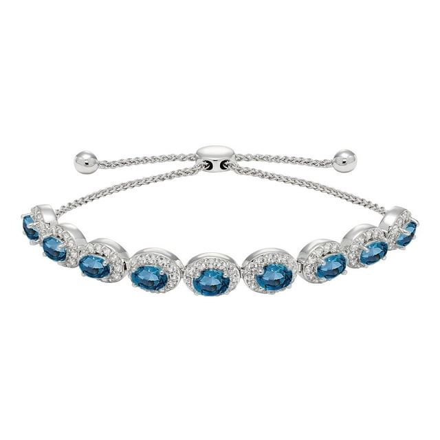 Oval Cut Gemstone Halo Bolo Bracelet in Sterling Silver