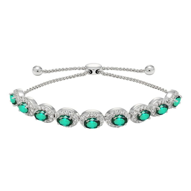 Oval Cut Gemstone Halo Bolo Bracelet in Sterling Silver
