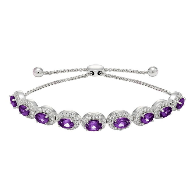 Oval Cut Gemstone Halo Bolo Bracelet in Sterling Silver
