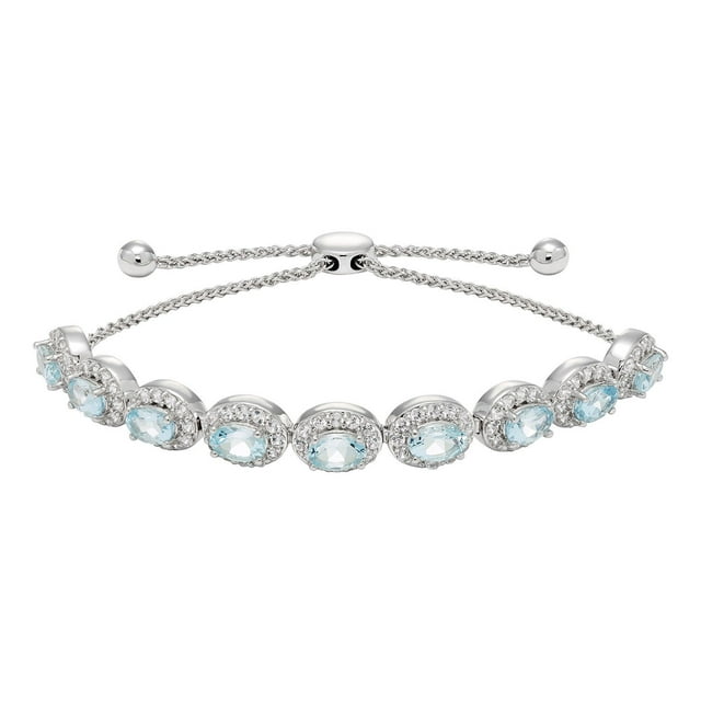 Oval Cut Gemstone Halo Bolo Bracelet in Sterling Silver